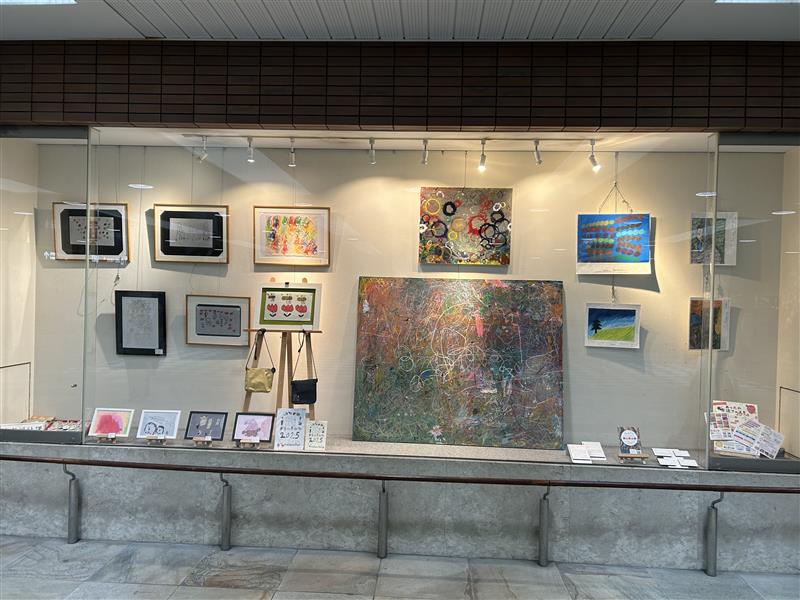 ※ 毎年度、鹿児島市障害福祉課さんが障害者週間に近い時期に場所を借りて、市内の障害福祉サービス事業所さんや鹿児島県障害者芸術文化活動支援センター(KA.DAC[カダック])さん等の協力をもらい作品展示を行っております。